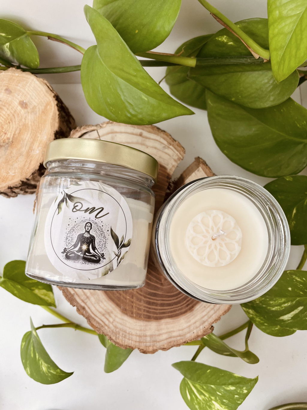 Ez a jógagyertya különlegesen szép OM feliratú designt kapott. 'Fellélegzés' nevű illatomat adtam neki (mely egy mentás, eukaliptuszos illat. Üde, friss, mégis lágyan segít megtisztítani az elmét az elcsendesedés perceihez). Tetején fehér kis mandala viaszdíszítéssel, mely szépen beleolvad majd a gyertyába meggyújtáskor. Tökéletes ajándéknak is a jóga szerelmeseinek :) Kis és nagy méretben is elérhető! Szép ezüstszínű fémtetővel érkezik. // // Ez egy környezetbarát illatgyertya. A nagy 9x10 cm-es 400 ml-es üvegben, mintegy 240 gramm prémium minőségű illatosított viasszal, mely akár 40-50 órán át is képes lélekmelengetni. Tiszta és károsanyagmentes alapanyagokból, a hagyományos gyertyáknál 2x olyan hosszú égési idővel! Természetesen, mint minden gyertyánk, ez is kézzel készül (így nincs is két teljesen ugyanolyan darab), megspékelve sok szeretettel és csupa környezetbarát hozzávalóval! A tégelyét kiürülés után ennek is örömmel újratöltöm! :) Ha valami más illattal lenne jó: honlapunkon 21+ illatunk bármelyikével előrendelhető ugyanez a designt! Illatainkról bővebben ide kattintva lehet többet megtudni.