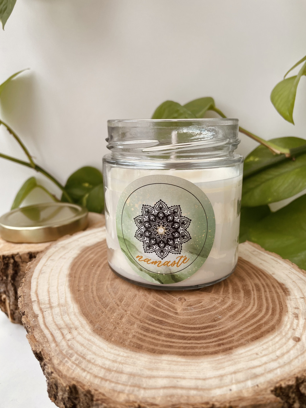 Az egyik jógagyertyám, mely csoda mandalás, NAMASTÉ feliratos designt kapott. Ennek 'Ellazulás' nevű illatunkat adtam, mely egy palo santo-s, kissé "füstölős" illat. (Olyan, mint mikor belép az ember a kedvenc jógatermébe és megcsapja az az ismerős finom érzés, hogy most már ellazulhat. :)) Tetején fehér kis mandala viaszdíszítéssel, mely szépen beleolvad majd a gyertyába meggyújtáskor. Tökéletes ajándéknak is a jóga szerelmeseinek :) Nagy méretben elérhető, szép aranyszínű fémtetővel érkezik. // Ez egy környezetbarát illatgyertya. A nagy 9x10 cm-es 400 ml-es üvegben, mintegy 240 gramm prémium minőségű illatosított viasszal, mely akár 40-50 órán át is képes lélekmelengetni. Tiszta és károsanyagmentes alapanyagokból, a hagyományos gyertyáknál 2x olyan hosszú égési idővel! Természetesen, mint minden gyertyánk, ez is kézzel készül (így nincs is két teljesen ugyanolyan darab), megspékelve sok szeretettel és csupa környezetbarát hozzávalóval! A tégelyét kiürülés után ennek is örömmel újratöltöm! :) Ha valami más illattal lenne jó: honlapunkon 21+ illatunk bármelyikével előrendelhető ugyanez a designt! Illatainkról bővebben ide kattintva lehet többet megtudni.