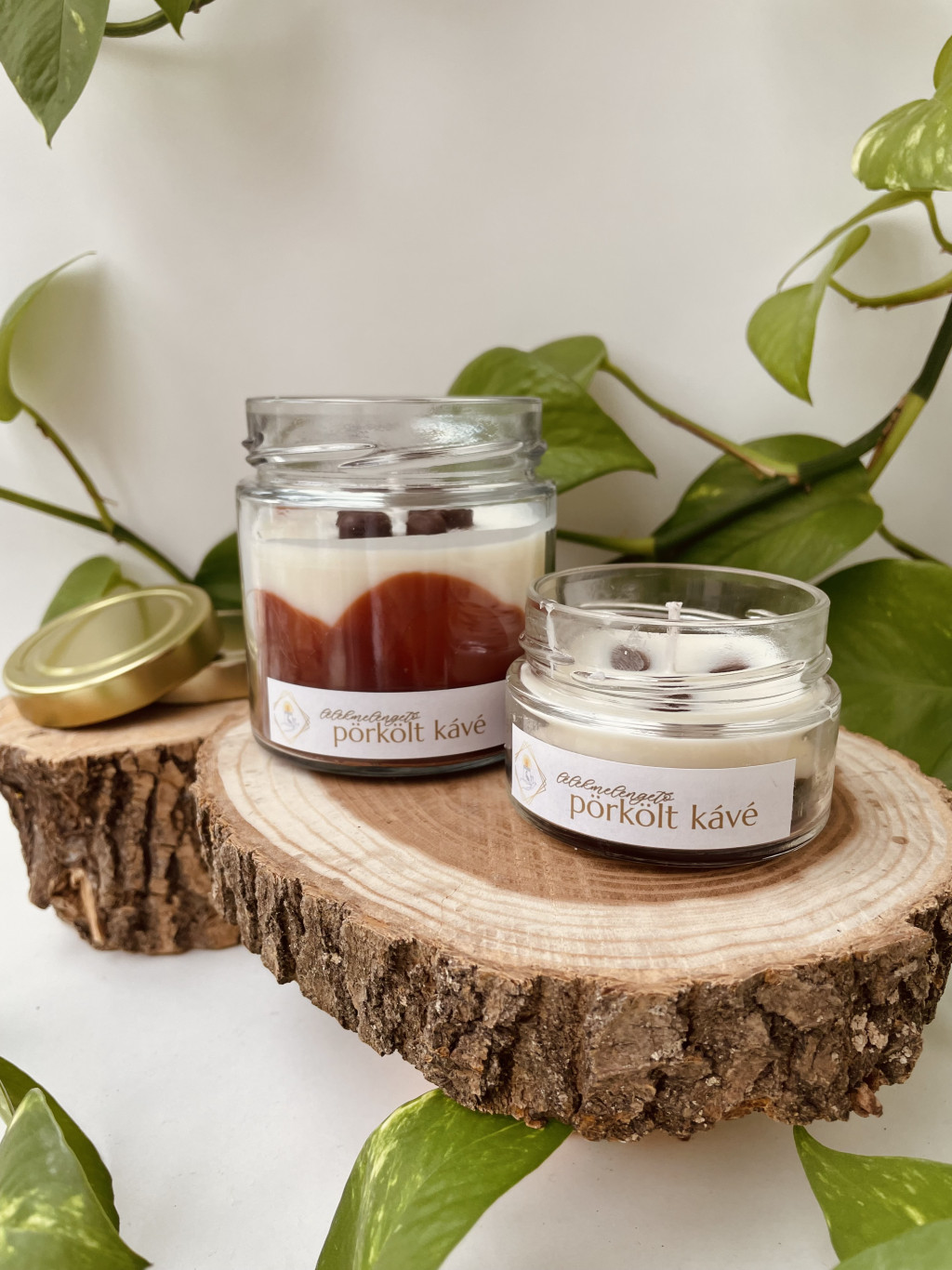 Ezt a gyertyát szívből ajánljom mindenkinek, aki imádja a koffeines mannát :) Tökéletes ajándéknak minden különlegesebb napra - vagy akár csak úgy :) A következő illattal rendelhető: Pörkölt kávé, ami egy intenzíven kávés illatunk, a koffeinimádóknak :) Oldalán barna márványos viaszdíszítéssel és kis barna viasz kávészemekkel. Kis és nagy méretben is elérhető, mindkettő arany fémtetővel. // Ez egy környezetbarát illatgyertya. A kicsi 7x5 cm-es 100 ml-es üvegben, 15 óra égési idővel, a nagy 9x10 cm-es 400 ml-es üvegben, akár 40-50 óra égési idővel. Tiszta és károsanyagmentes alapanyagokból, a hagyományos gyertyáknál 2x olyan hosszú égési idővel! Természetesen, mint minden gyertyánk, ez is kézzel készül (így nincs is két teljesen ugyanolyan darab), megspékelve sok szeretettel és csupa környezetbarát hozzávalóval! A tégelyét kiürülés után ennek is örömmel újratöltöm! :)
