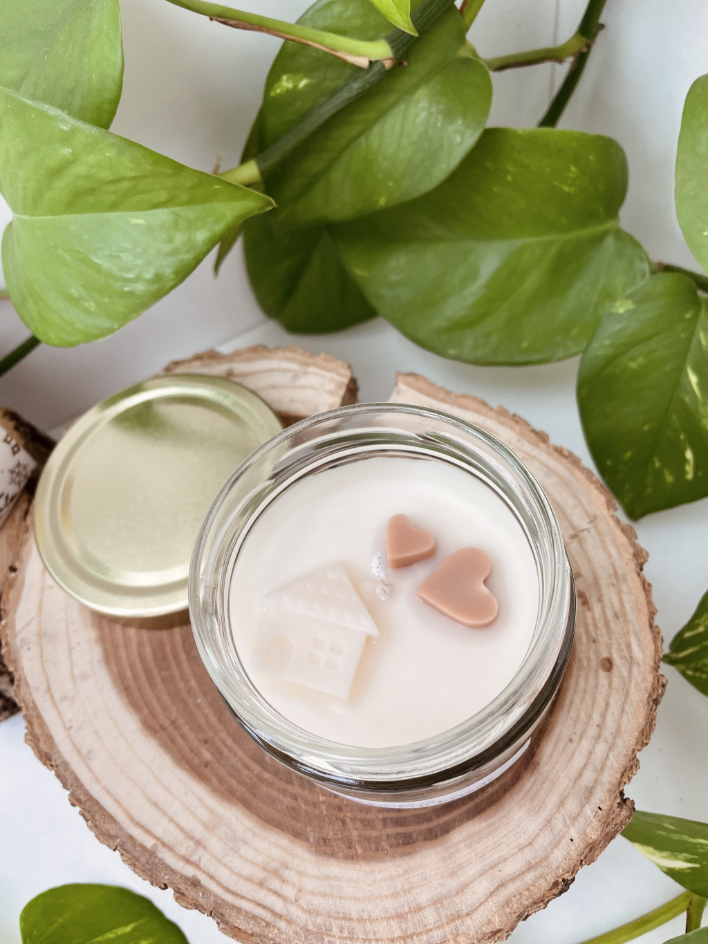 Ez a Bekuckózós gyertya is a téli különleges lélekmelengetők egyike: isteni Sóskaramella illatunkat adtam neki - mely egy édes, süteményes illat, igazán tökéletes az ünnepi hangolódáshoz. :) Szép házikós, szívecskés viaszdíszt kapott és aranyszínű tetőt. Tökéletes ajándéknak is a soron következő különleges napokra - vagy akár csak úgy :) // Ez egy környezetbarát illatgyertya, 9x6 cm-es, körülbelül 200 ml-es üvegben. Tiszta és károsanyagmentes, prémium minőségű alapanyagokból, a hagyományos gyertyáknál 2x olyan hosszú égési idővel! Természetesen, mint minden gyertyánk, ez is kézzel készül (így nincs is két teljesen ugyanolyan darab), megspékelve sok szeretettel és csupa környezetbarát hozzávalóval! A tégelyét kiürülés után ennek is örömmel újratöltöm! :)