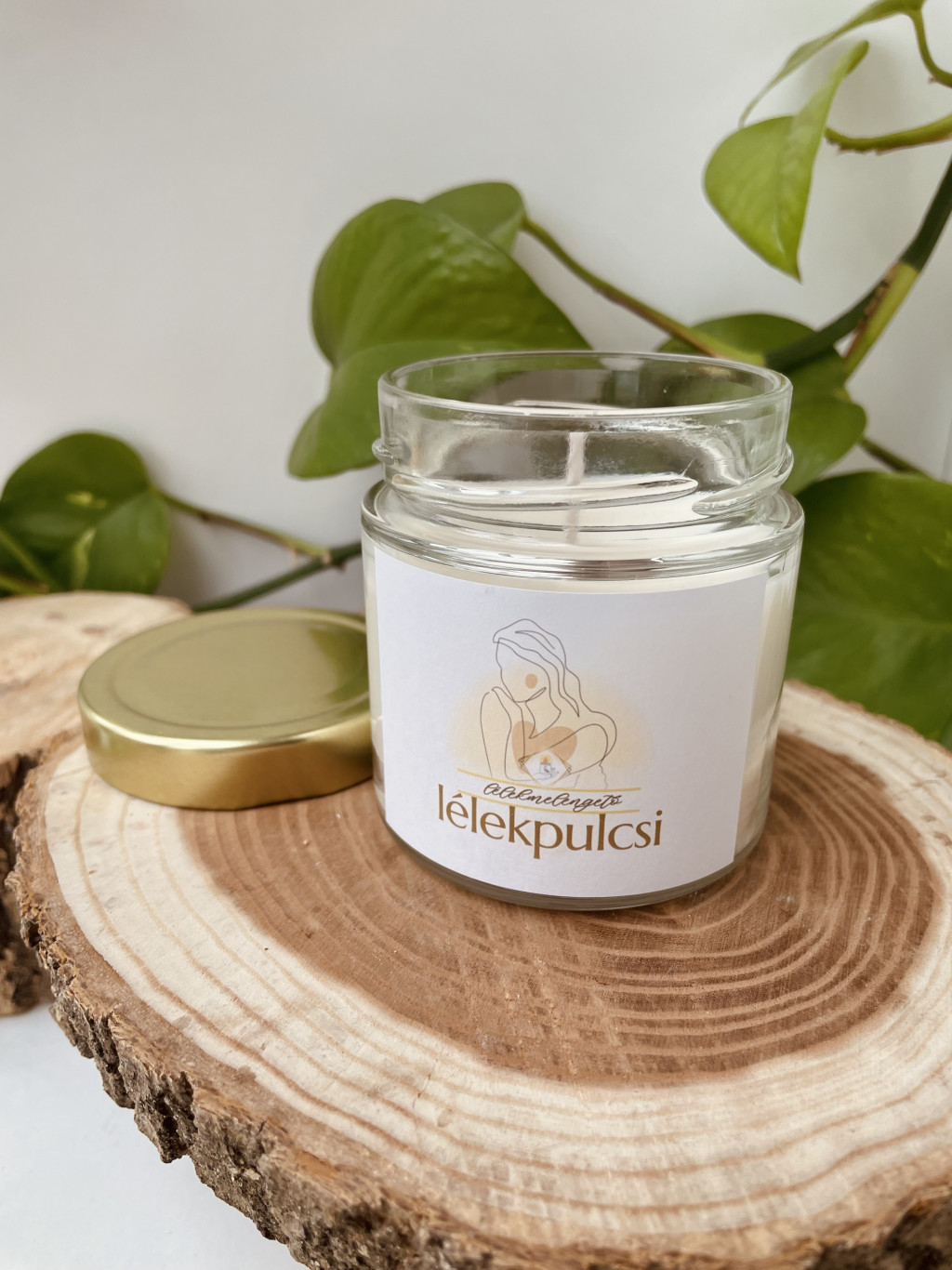 Ennek a gyertyának a finoman bársonyos Lélekpulcsi illatunkat adtam - ez olyan, mint egy puha, gyengéd ölelés a léleknek, vagy épp a legpuhább takaró, mely alatt öröm bekuckózni. :) (Vásárokon ez az illat fogy el először, úgyhogy úgy éreztem, érdemel egy külön gyertyát is. :)) Különleges design címkét kapott és aranyszínű tetőt. Tökéletes ajándéknak is a soron következő különleges napokra - vagy akár csak úgy :) // Ez egy környezetbarát illatgyertya, 7x8 cm-es, körülbelül 200 ml-es üvegben, akár 30 órányi égési idővel. Tiszta és károsanyagmentes, prémium minőségű alapanyagokból, a hagyományos gyertyáknál 2x olyan hosszú égési idővel! Természetesen, mint minden gyertyánk, ez is kézzel készül (így nincs is két teljesen ugyanolyan darab), megspékelve sok szeretettel és csupa környezetbarát hozzávalóval! A tégelyét kiürülés után ennek is örömmel újratöltöm! :)