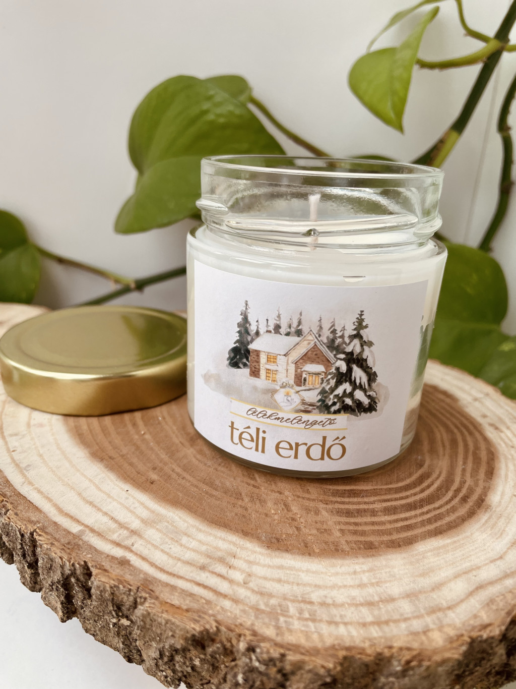 A Téli Erdő gyertya olyan illatú, mint egy frissítő séta egy fenyvesben vagy a parkban, miközben havazik. Fenyős, zöld, üde illat, tökéletes a téli felfrissülésre vágyóknak. Különleges design címkét kapott és aranyszínű tetőt. Tökéletes ajándéknak is a soron következő különleges napokra - vagy akár csak úgy :) // Ez egy környezetbarát illatgyertya, 7x8 cm-es, körülbelül 200 ml-es üvegben, akár 30 órányi égési idővel. Tiszta és károsanyagmentes, prémium minőségű alapanyagokból, a hagyományos gyertyáknál 2x olyan hosszú égési idővel! Természetesen, mint minden gyertyánk, ez is kézzel készül (így nincs is két teljesen ugyanolyan darab), megspékelve sok szeretettel és csupa környezetbarát hozzávalóval! A tégelyét kiürülés után ennek is örömmel újratöltöm! :)
