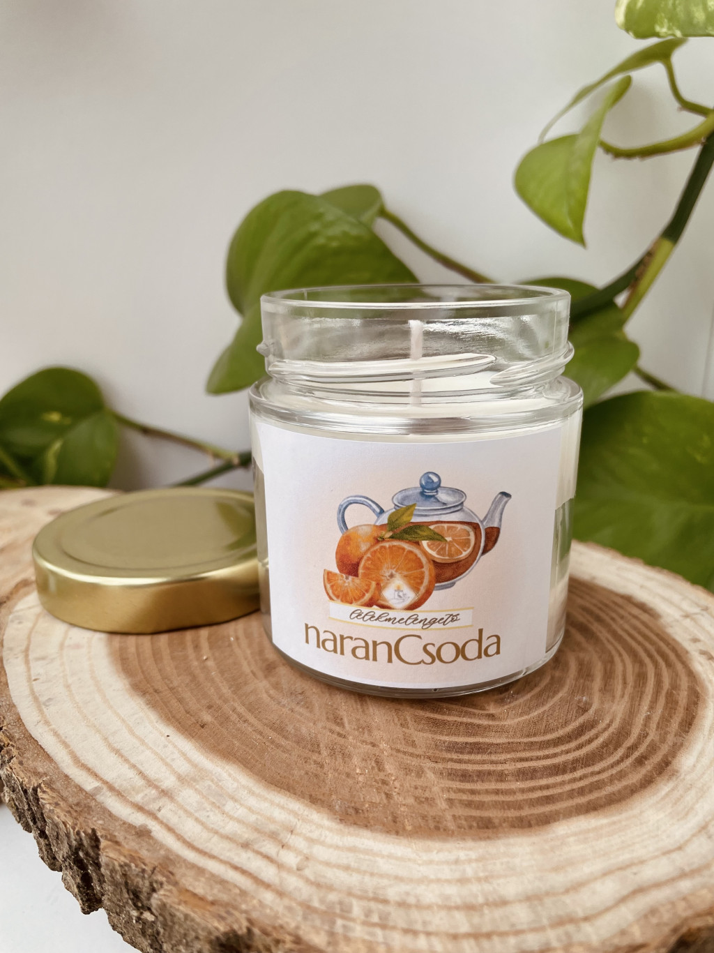 Ezt a gyertyát annak ajánlom, aki szereti a citrusos, narancsos illatokat - ez ugyanis épp olyan: mint a legfrissebb, legfinomabb narancs, aminek csak az illatáért is érdemes már meghámozni egyet. Egy naranCsoda :) Különleges design címkét kapott és aranyszínű tetőt. Tökéletes ajándéknak is a soron következő különleges napokra - vagy akár csak úgy :) // Ez egy környezetbarát illatgyertya, 7x8 cm-es, körülbelül 200 ml-es üvegben, akár 30 órányi égési idővel. Tiszta és károsanyagmentes, prémium minőségű alapanyagokból, a hagyományos gyertyáknál 2x olyan hosszú égési idővel! Természetesen, mint minden gyertyánk, ez is kézzel készül (így nincs is két teljesen ugyanolyan darab), megspékelve sok szeretettel és csupa környezetbarát hozzávalóval! A tégelyét kiürülés után ennek is örömmel újratöltöm! :)
