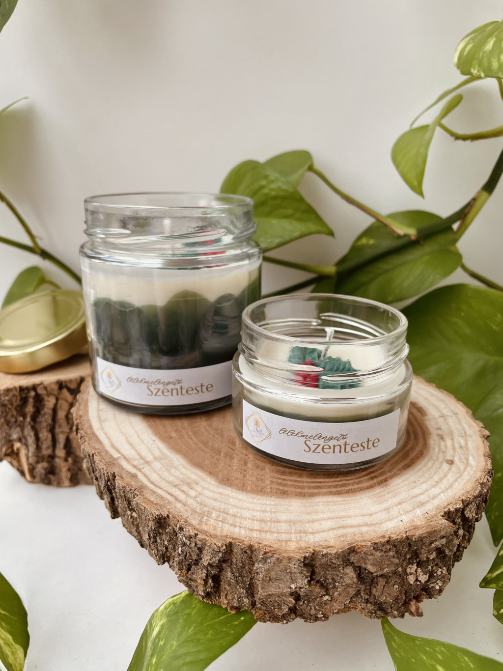 Amikor a karácsony illata betölti az otthonod – ez a Szenteste gyertya pontosan ezt az érzést adja. Képzeld el: karácsonyfa a nappaliban, frissen sült sütemények illata keveredik a fenyő aromájával, narancs és fahéj a levegőben. Ebben a Szenteste gyertyában bennevan mindez - minden, ami karácsony.. Nem véletlen, hogy ez minden évben bestseller. Ez az illat maga az ünnep. :) Miért különleges? Ez a gyertya nemcsak illatosít – ünnepi hangulatot teremt, emlékeket idéz, otthonossá teszi a karácsonyt. Oldalán zöld márványos viaszdíszítéssel és színes magyalágas viaszdísz a tetején – így önmagában is gyönyörű karácsonyi dekoráció. Tökéletes ajándéknak minden különlegesebb napra – vagy akár csak úgy, mert megérdemled ezt az ünnepi pillanatot. Két méretben elérhető: Kis méret (100 ml): 7×5 cm, 15 óra égési idő – tökéletes kipróbálásra vagy kisebb terekbe Nagy méret (400 ml): 9×10 cm, 40-50 óra égési idő – hosszan tartó ünnepi illatélmény Mindkét méret arany fémtetővel érkezik. Prémium minőség, környezetbarát alapanyagok Ez egy környezetbarát illatgyertya. Tiszta és károsanyagmentes alapanyagokból készül, a hagyományos gyertyáknál 2x olyan hosszú égési idővel! Természetesen, mint minden gyertyánk, ez is kézzel készül – így nincs is két teljesen ugyanolyan darab – megspékelve sok szeretettel és csupa környezetbarát hozzávalóval! A tégelyét kiürülés után ennek is örömmel újratöltöm! Így a gyertyád sosem ér véget – csak az illata változik.