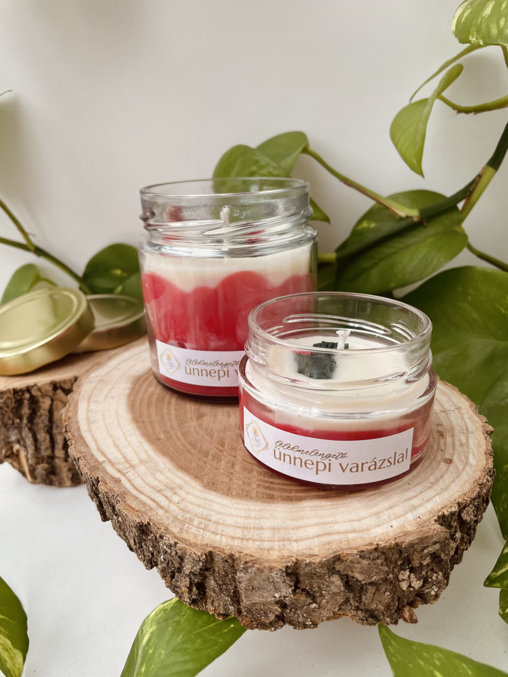 Karácsony, gyertyafény, és egy mesésen fűszeres illat terjeng a levegőben. Ez az Ünnepi Varázslat illat egy sáfrányos, fahéjas csoda – olyan, ami azonnal ünnepi hangulatba hoz. Nem csak egy illat – egy varázslat, ami megtölti az otthonod a karácsony lelkével. Miért különleges? Ez a gyertya nemcsak illatosít – varázslatos ünnepi hangulatot teremt, emlékeket idéz, otthonossá teszi a karácsonyt. Oldalán piros márványos viaszdíszítéssel és magyalágas viaszdísz a tetején – így önmagában is gyönyörű karácsonyi dekoráció. Tökéletes ajándéknak minden különlegesebb napra – vagy akár csak úgy, mert megérdemled ezt az ünnepi varázst. Két méretben elérhető: Kis méret (100 ml): 7×5 cm, 15 óra égési idő – tökéletes kipróbálásra vagy kisebb terekbe Nagy méret (400 ml): 9×10 cm, 40-50 óra égési idő – hosszan tartó ünnepi illatélmény Mindkét méret arany fémtetővel érkezik. Prémium minőség, környezetbarát alapanyagok Ez egy környezetbarát illatgyertya. Tiszta és károsanyagmentes alapanyagokból készül, a hagyományos gyertyáknál 2x olyan hosszú égési idővel! Természetesen, mint minden gyertyánk, ez is kézzel készül – így nincs is két teljesen ugyanolyan darab – megspékelve sok szeretettel és csupa környezetbarát hozzávalóval! A tégelyét kiürülés után ennek is örömmel újratöltöm! Így a gyertyád sosem ér véget – csak az illata változik. Válaszd ezt, ha szeretnéd az ünnepi varázslat illatát élvezni gyertya formájában!