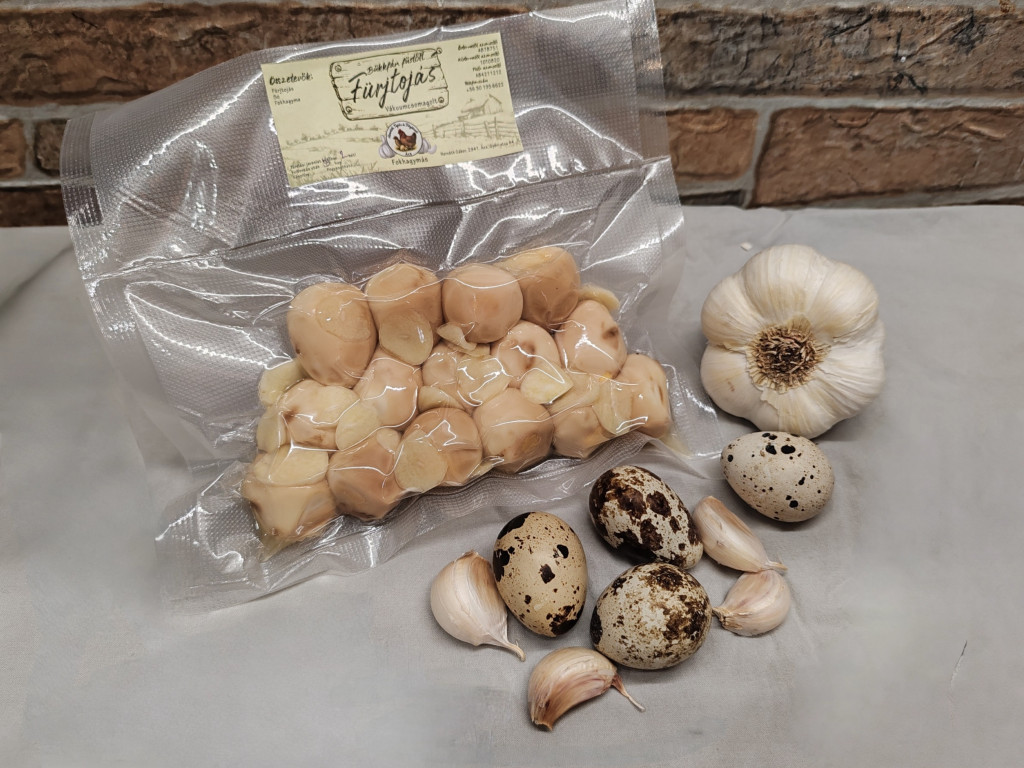 Fokhagymás főtt füstölt fürjtojás vákuumcsomagolva
