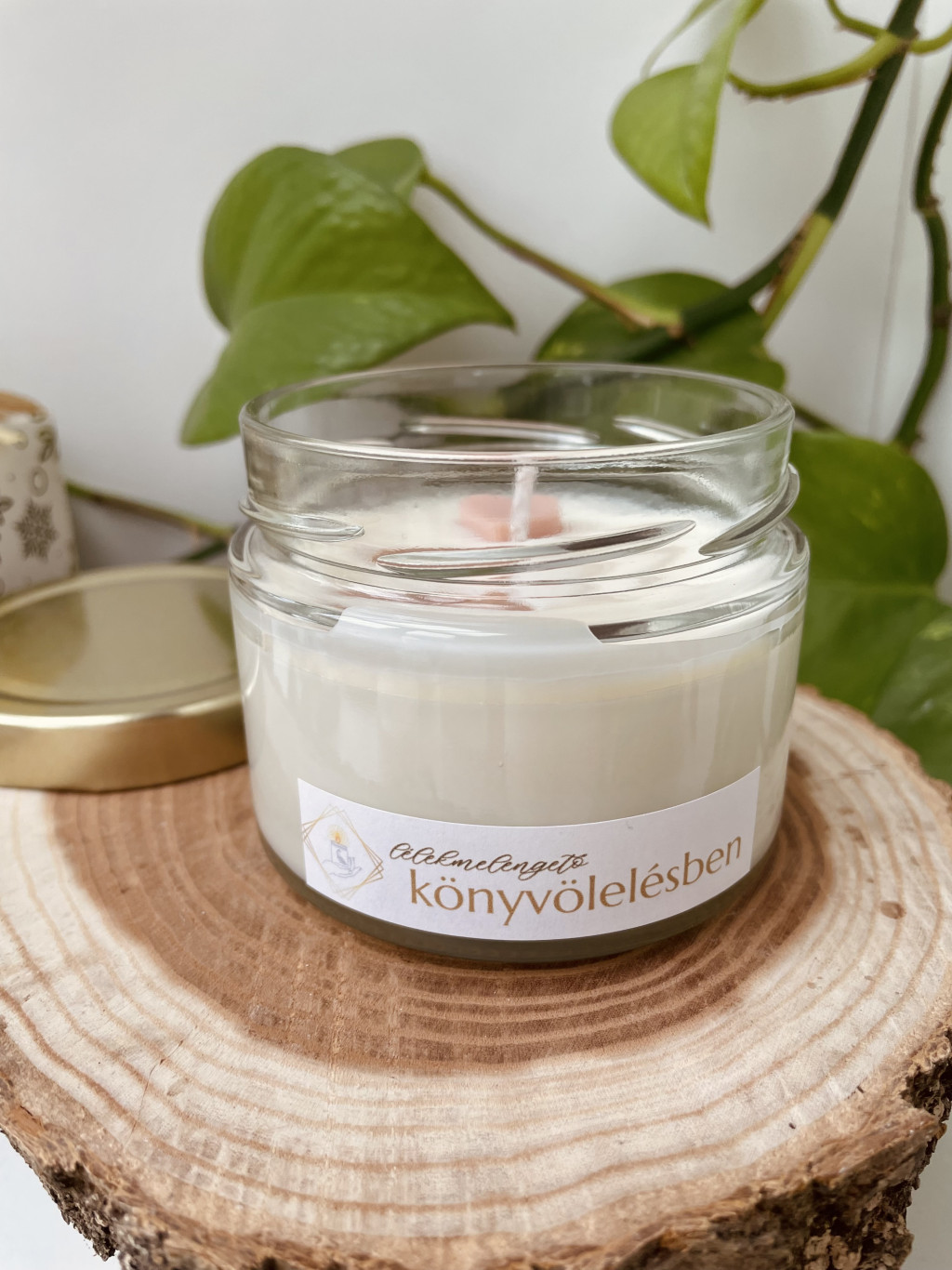 A Könyvölelésben gyertát elsősorban a könyvek szerelmeseinek álmodtam meg. Finoman bársonyos Lélekpulcsi illatunkat adtam neki - mely olyan, mint egy puha, gyengéd ölelés a léleknek, vagy épp a legpuhább takaró, mely alatt öröm elveszni a sorok között. :)
