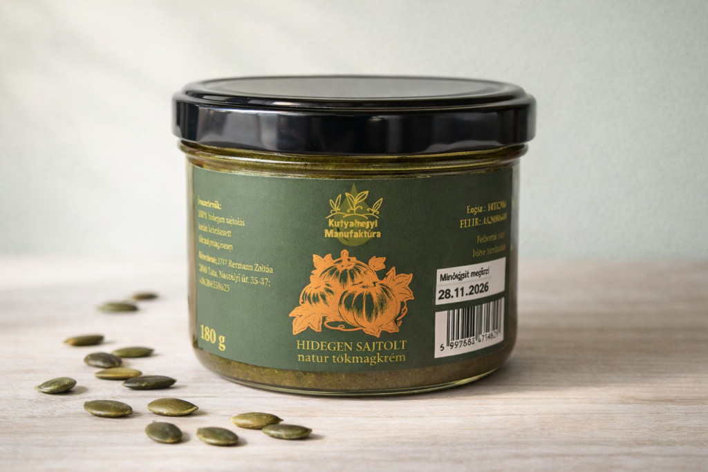 A tökmag hidegen sajtolása során keletkezett tökmag iszap. Kiváló kence készíthető belőle pirítósra vagy mártogatósnak egy kis sóval, borssal ,fokhagymával fűszereve ízlés szerint. Felbontás után hűtve tárolandó!